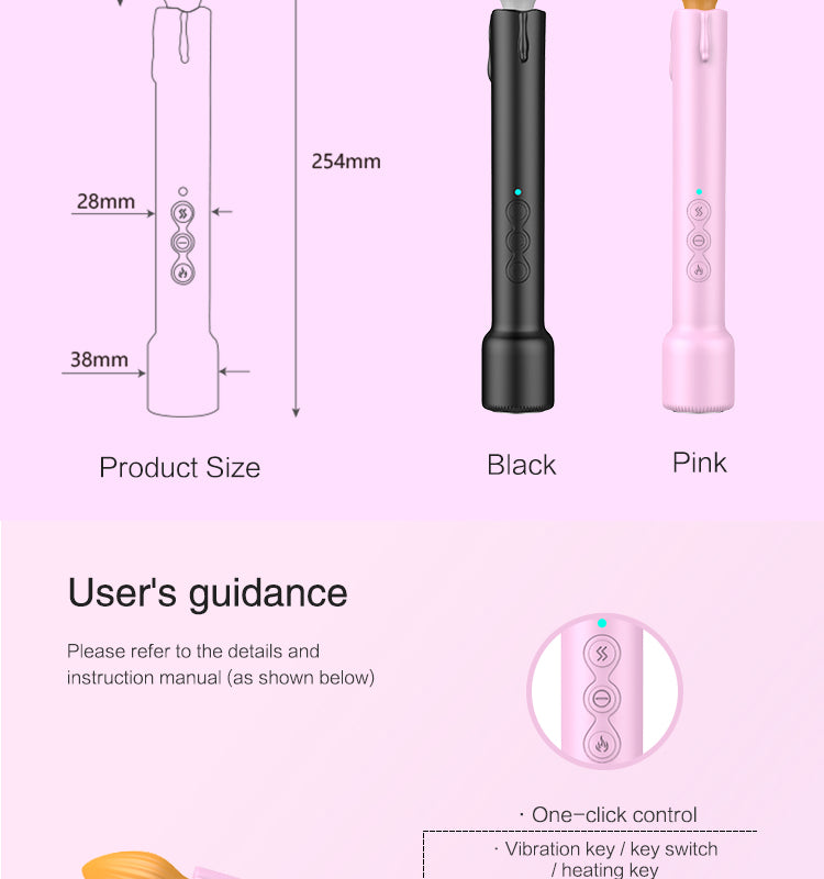 The Heated Candle Massager combines elegance and functionality in one sleek device. Designed with six vibration modes and a gentle heating function, this massager provides a warm, relaxing experience tailored to your preferences. Compact and made with safe silicone materials, it is ideal for both beginners and seasoned users.